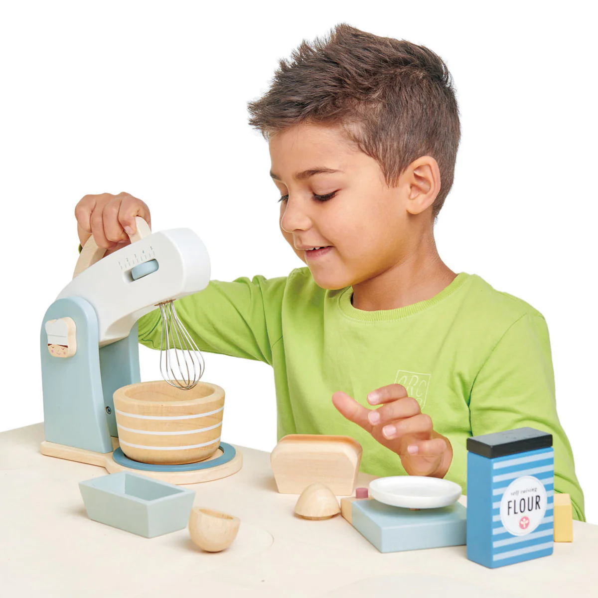 Time to bake a cake! All children love to help bake, and this gender neutral set is perfect for any toddler wanting to pretend play bake. Excellent for perfecting fine motor skills and story telling, this set can be played with friends. Soft modern colours compliment the use of natural wood, and this fab set is made from sustainably sourced rubber wood, which makes it a truly earth friendly toy.
